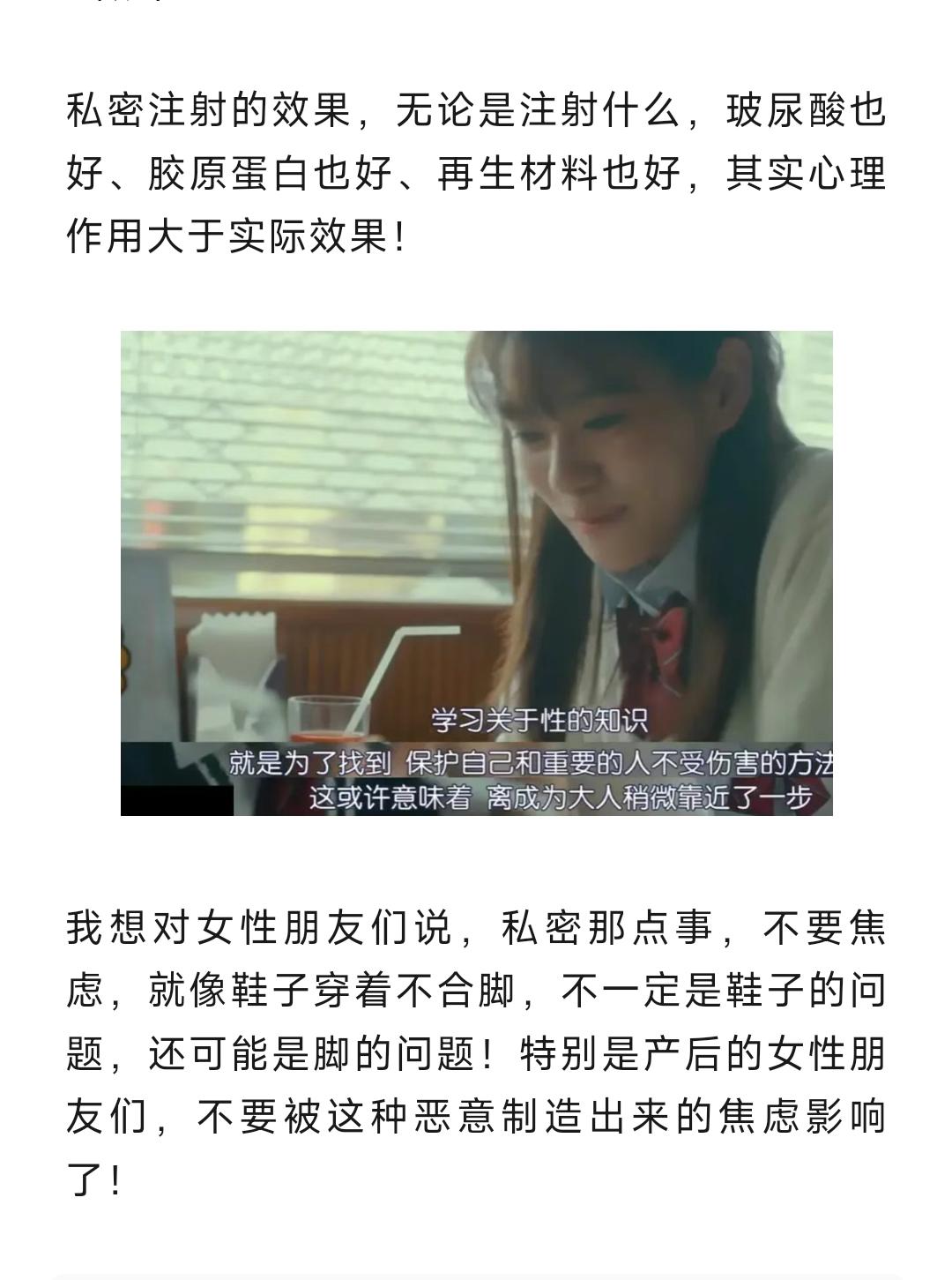 私密注射,真的不要去打。女性朋友们,私密那点事,不要焦虑,就像鞋子穿着不合脚,不一定是鞋子的问题,还可能是脚的问题!特别是产后的女性朋友们,不要被这种恶意制造出来的焦虑影响了!
