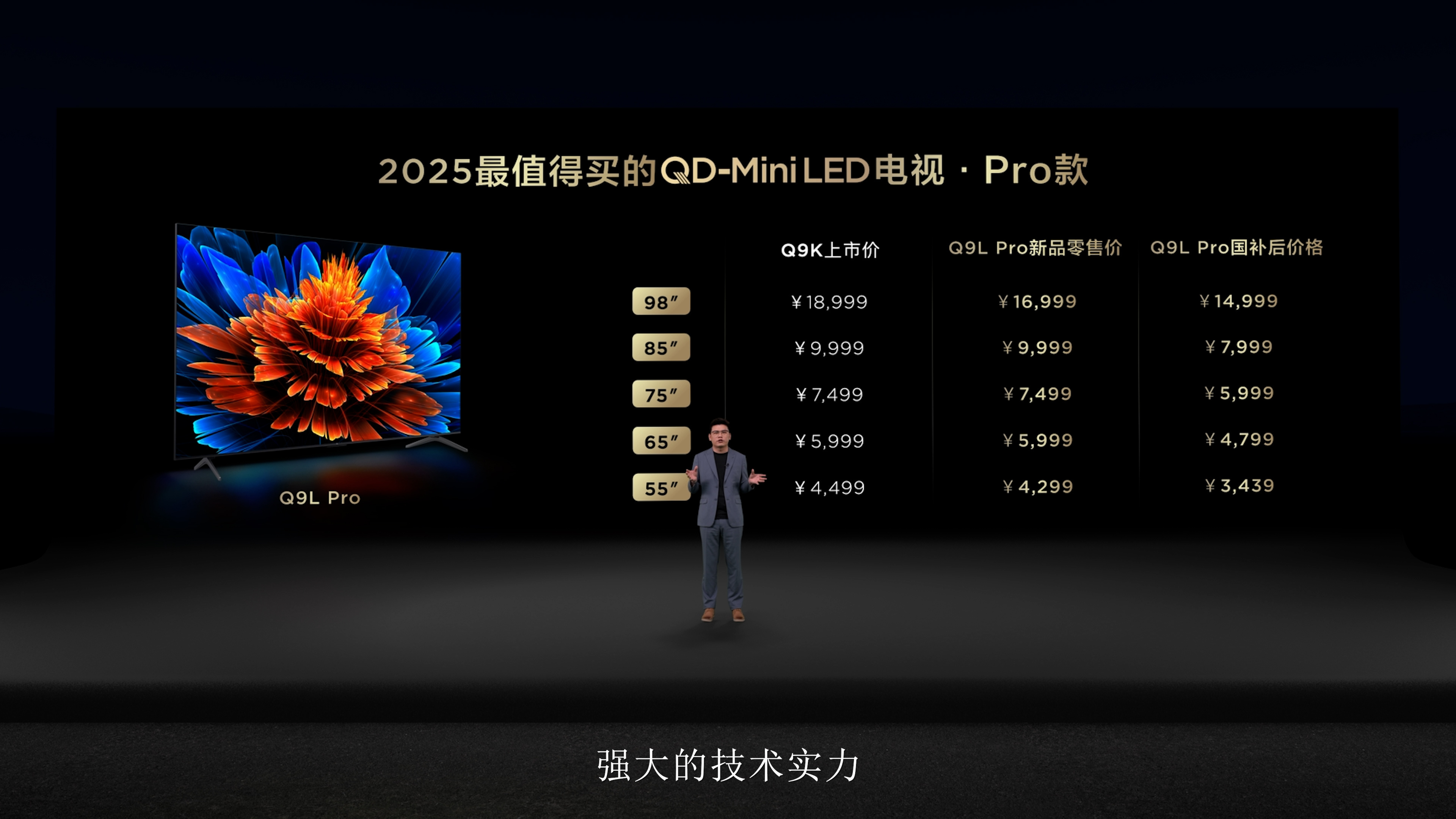 TCL QD-Mini LED电视新品T7L系列和Q9L系列正式发布!TCL的这个万象分区确实有点东西,控光能力、亮度、对比度的升级都很明显,屏幕采用蝶翼星曜屏,拥有7000比1的超高对比度,还有全球领先的色彩技术:量子点Pro 2025,芯片由22nm的9653升级到12nm的9655+,性能大幅提升,再配上现在的国补是真香[666]T7L到手价2799元起,T7L Pro到手价干到3839元起