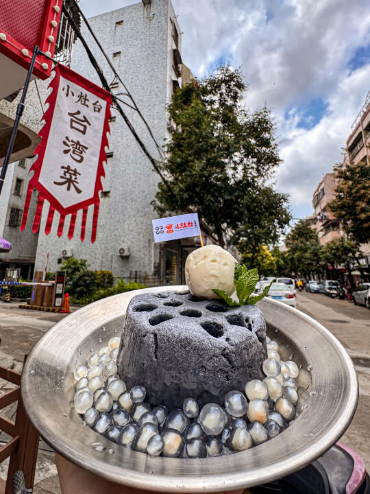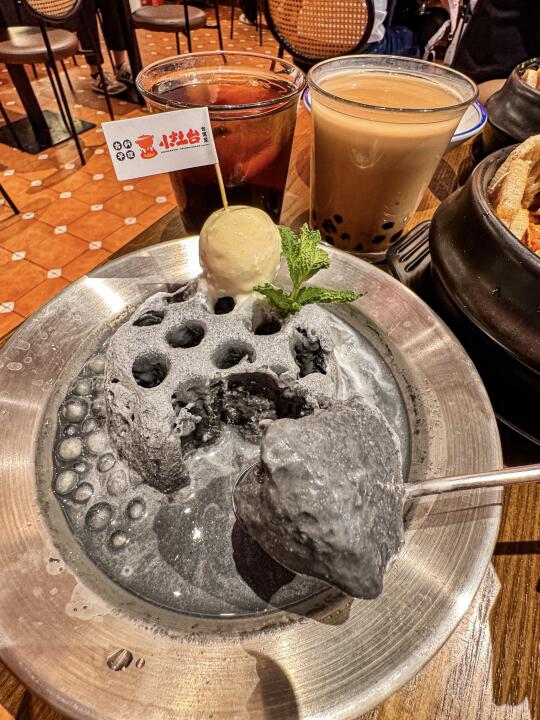 很逼真的媒蜂窝椰子冰…😅 乌漆嘛黑的但其实是椰香味的!不怕会很甜 上面挖了一大球的香草冰淇淋 底下还有脆脆的马蹄爆珠! 冰冰甜甜还蛮好吃的~~