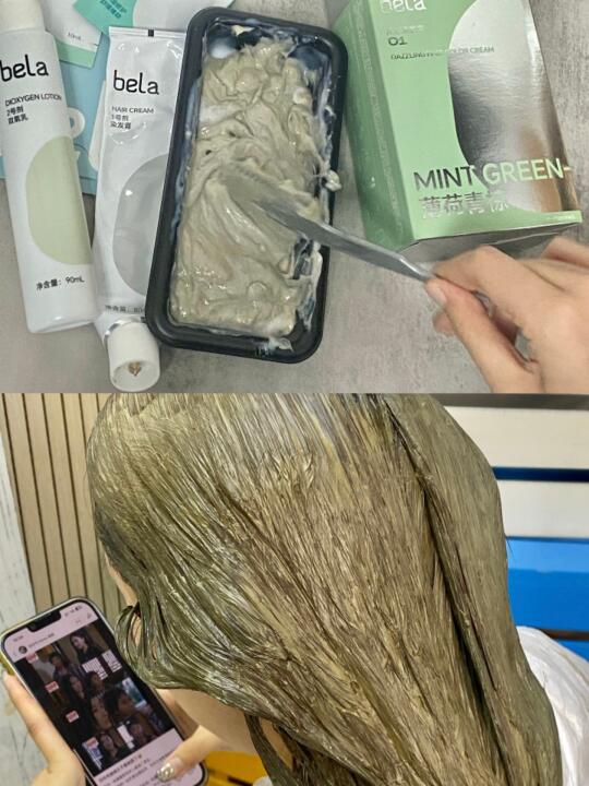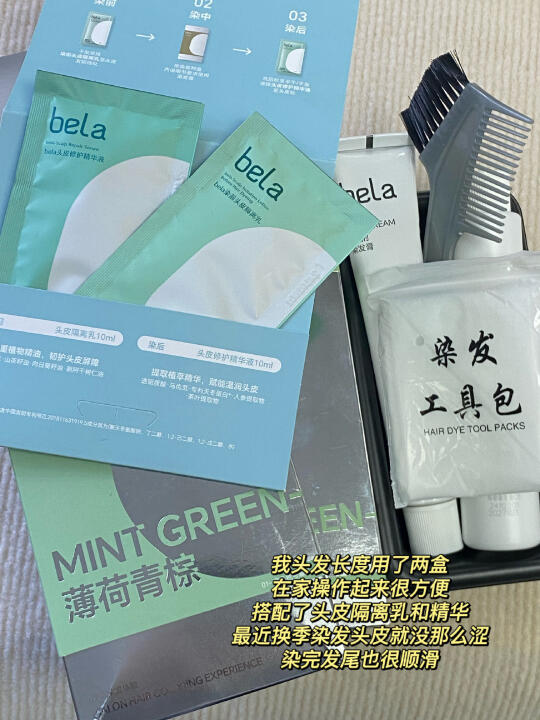 青棕色才是不该被忽略的发色好吗!bela的薄荷青棕赶紧被大家发现吧!冷调茶棕➕一丝雾感青灰💨很特别的颜色!! 室内是低调的亚麻棕,光下青调会更明显,随便卷个头发就很洋气!我是自己染出来的,染膏上头的时候也是特别的温和,不用去理发店一坐好几个小时了,涂上后可以忙别的事情,看一集电视剧就ok了!