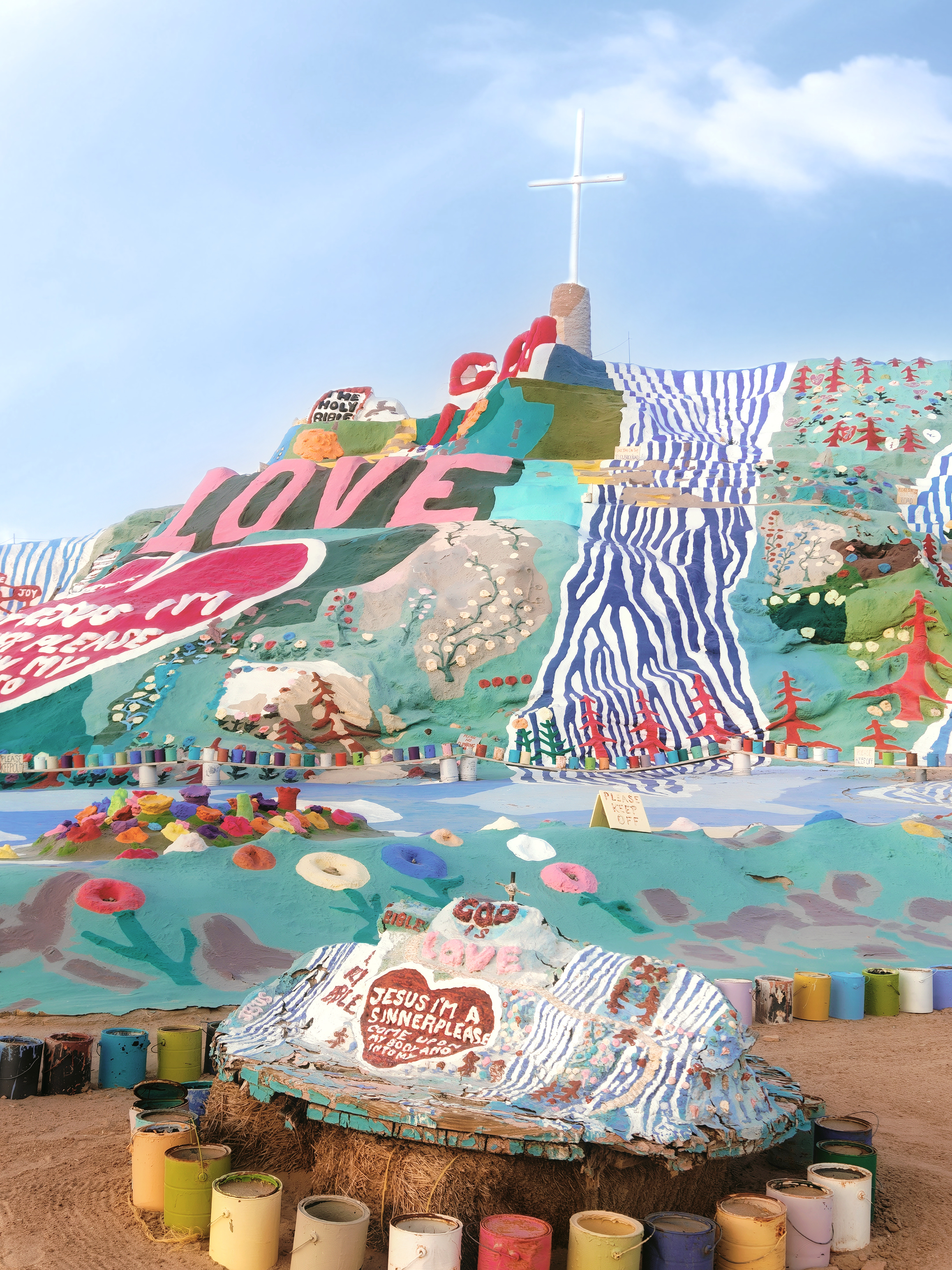 ✨ 加州荒漠深处,Leonard 用 30 年亲手堆砌了Salvation Mountain救赎山。我受洗重生的第7年,站在了用数十万升油漆涂抹的彩绘前,看破碎的陶土和色彩共存,就像祂让我破碎又重生的样子,用恩典遮盖裂痕,在废墟重筑花园……就好像盘旋在幽谷中祂也会一直用手托住我告诉我“爱里没有惧怕,旧事已过,一切都是新的,当像纯全善良的孩子飞向灿烂的日子里,寻找闪烁的星星。”
