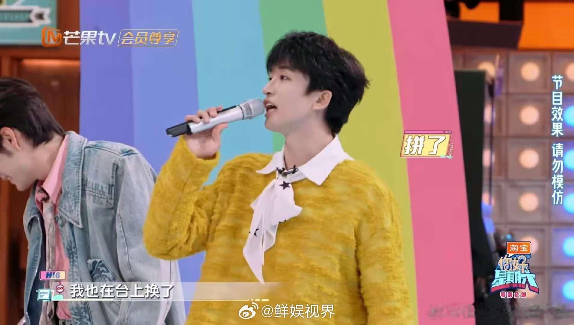 黄子弘凡丁程鑫为了节省步数拼了 你好星期六换装往返后台太麻烦?黄子弘凡丁程鑫直接台上解决!这创意太赞了,期待你好星期六的精彩!