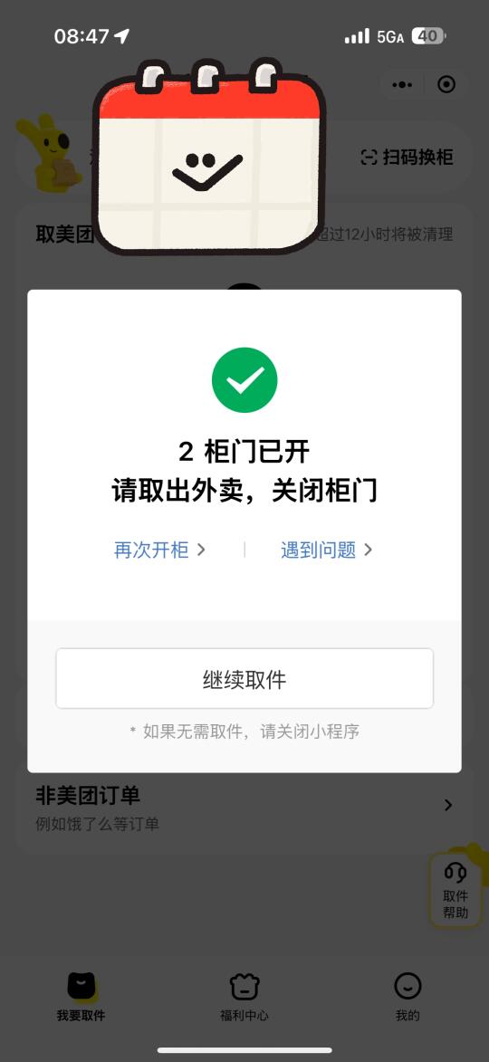 2)美团外卖我就可以点击开箱或者扫码开箱了。扫码没有效果,罚站,我只能上楼用其他手机登录再开柜[生气R]