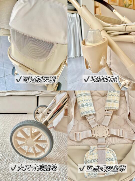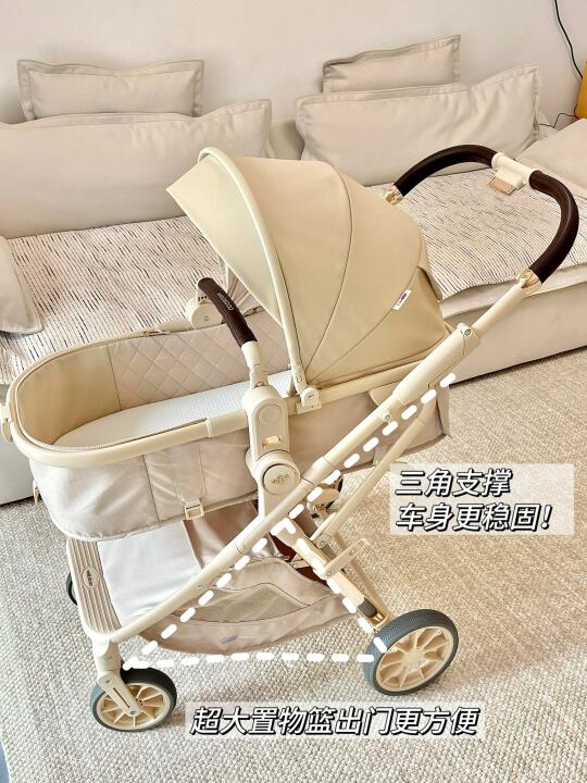 人字固稳结构+超大避震轮,过石子路也不怕,宝宝不会有颠簸的感觉,躺上面可以舒舒服服睡觉