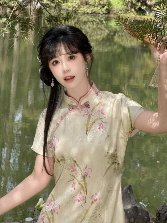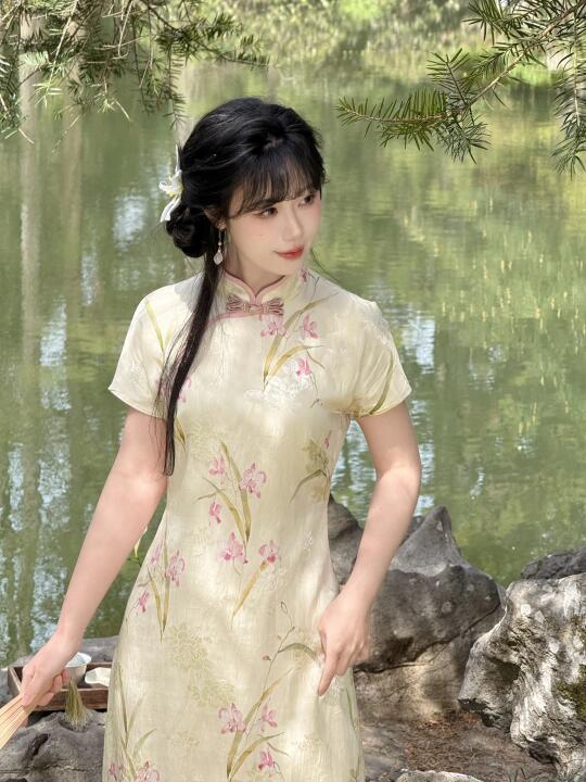 裁一段江南烟雨作绸,将玉簪花的清雅之美绘制于衣衫中 夏衫薄,旗袍轻,步履间摇曳生姿 - 天然舒适的天丝苎麻旗袍,夏天穿着非常凉快~
