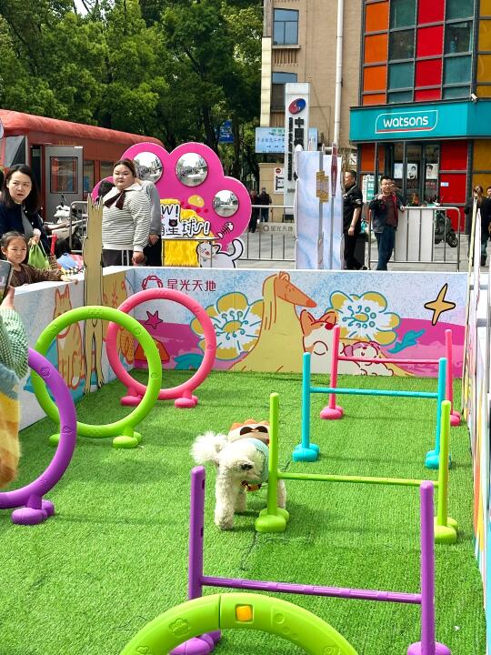 好热闹!!星光天地的宠物集市[搜索高亮]太好玩了 家里有宠物的主人们真的可以带毛孩子出来遛一下 好多可爱的喵汪星人!!萌晕我了 还有好多摊位可以逛 各种玩具、宠物粮、零食… 还有表演和礼物可以领 周边也是超萌!!