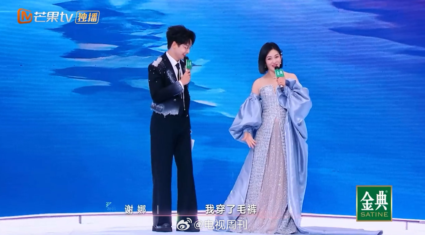 谢娜[超话]谢娜礼服里穿毛裤乘风2025谢娜的冷暖平衡法则:在冷风中保持优雅,礼