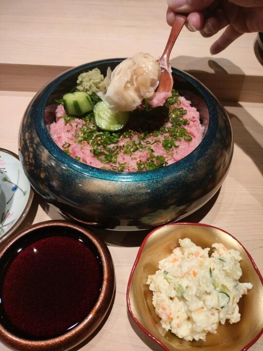 三八假期,去心仪已久的一家日式料理店,终于有空去尝尝美味了,在新闸路上。门面装饰低调,典型的日式装修风格,环境安逸舒适。 厚切的三文鱼铺满了整个碗,纹理清晰,入口即化。三文鱼的香气在口腔中散开,每一口都超满足。 每家日店都会有蒸蛋,应该是很平常的一道菜,但是他们家却与众不同,里面放了蟹柳蒸蛋,超级爽滑水嫩,让人心情愉悦感。 简单又美味的日式料理,轻轻松松拥有满满的蛋白质,一口一口大满足。
