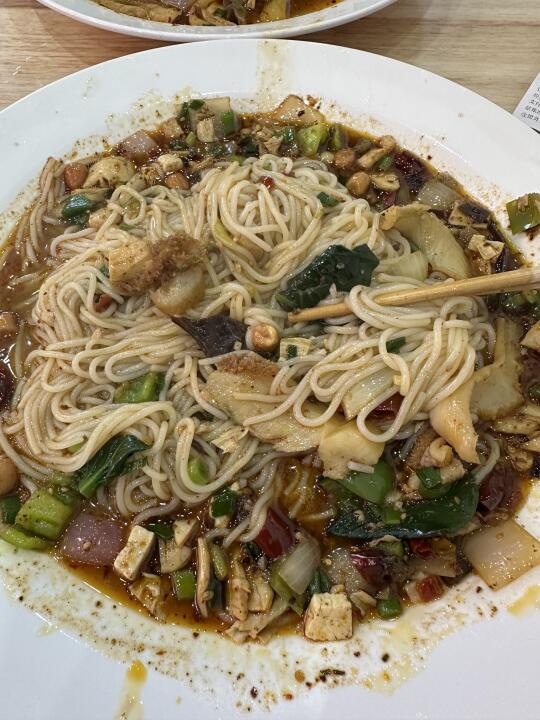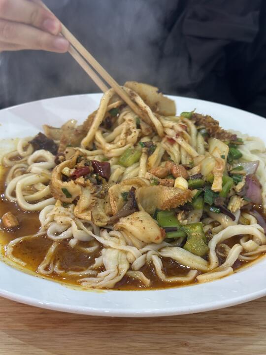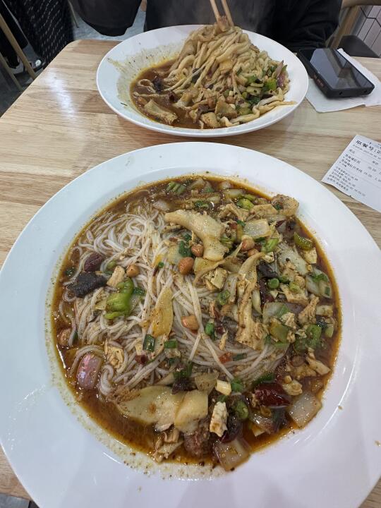 手擀爆肚面是这家的招牌,不听劝点了爆肚米线 米线口感真的差太多了,报吃😅 又重新点了了一份手擀爆肚面,面很劲道!!辣度中辣也可以接受~