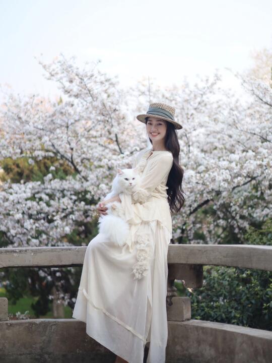 夏天在自然公园里,穿白色背心搭配黄色牛仔裤,妥妥就是甜美少女本女。白色背心清爽又
