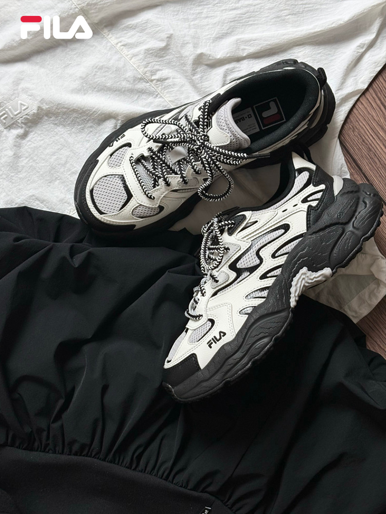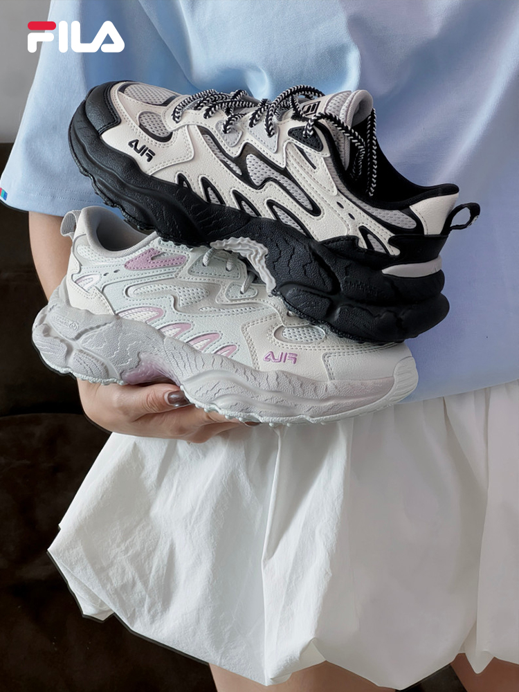 人气蕨草鞋必备单品!形象色是贴合野外植物主题的户外丛林探险设计,潮流吸睛的同时也不失百搭舒适性。 1、户外风鞋底:模拟岩石嶙峋、风化的表面,增加异形色块点缀,体现粗犷的户外风格 2、蕨类元素鞋面:鞋眼片与鞋身多重革料的不规则线条,呼应蕨类植物外形和轮廓,富有设计感 3、 FILA 轻舒发泡科技中底:穿着脚感轻质柔软,舒适Q弹
