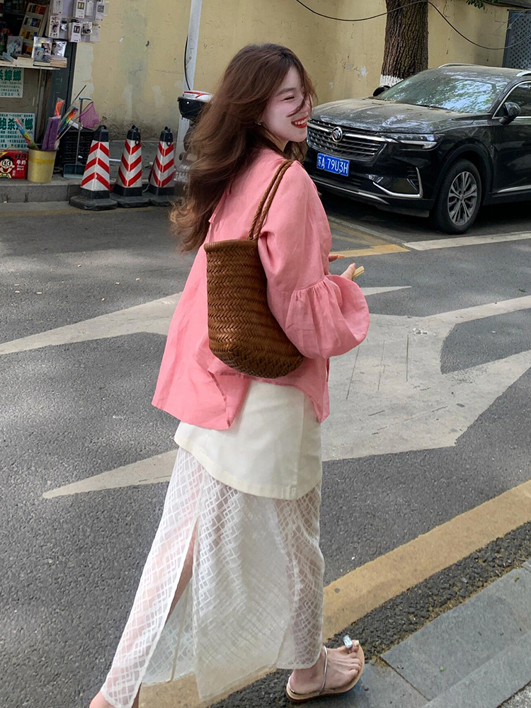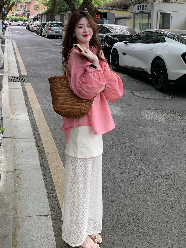 气质百搭高级感小香风轻熟粉色防晒衬衫