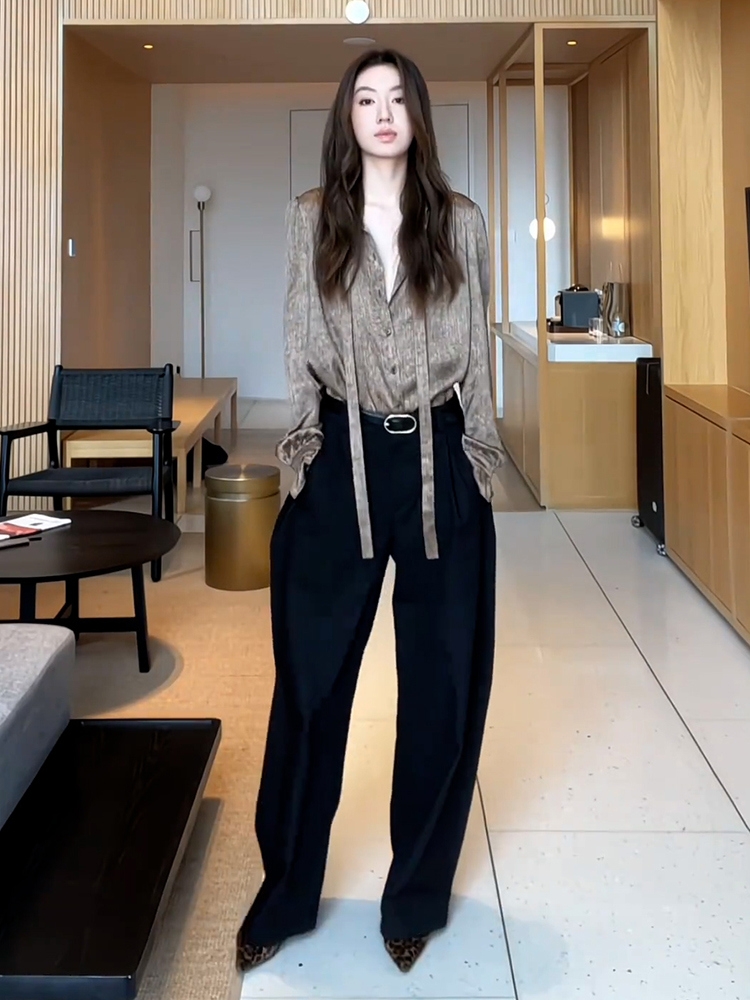 姐姐在溪边美得像幅自然画卷!黑色紧身衣勾勒出曼妙曲线,米色裤装衬得身姿挺拔,低丸
