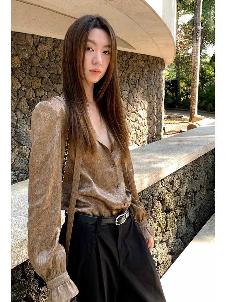 绝美小上衣高级感轻奢洋气减龄鎏金色衬衫