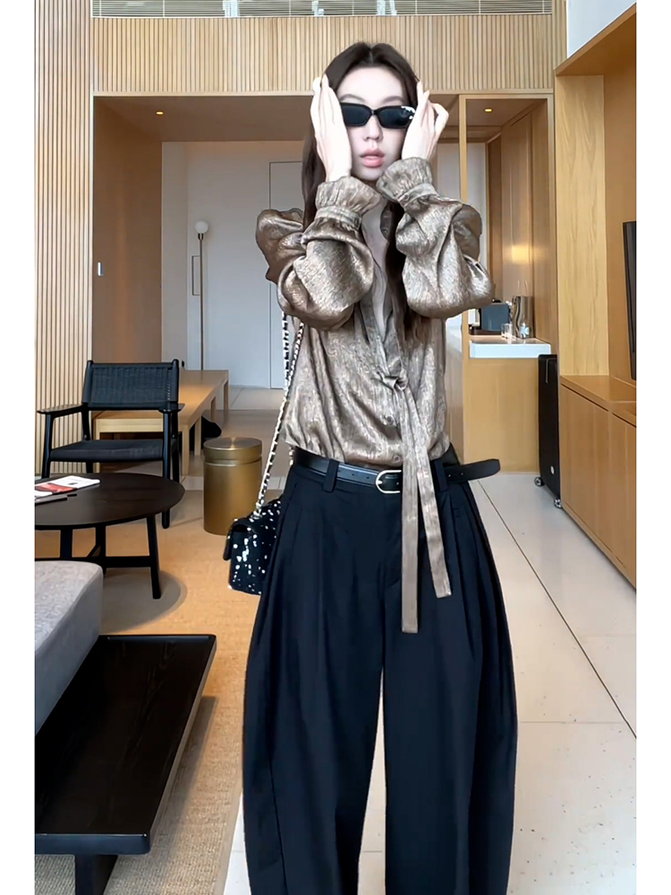 2025超火春装独特超好看绝美小上衣高级感轻奢洋气减龄鎏金色衬衫