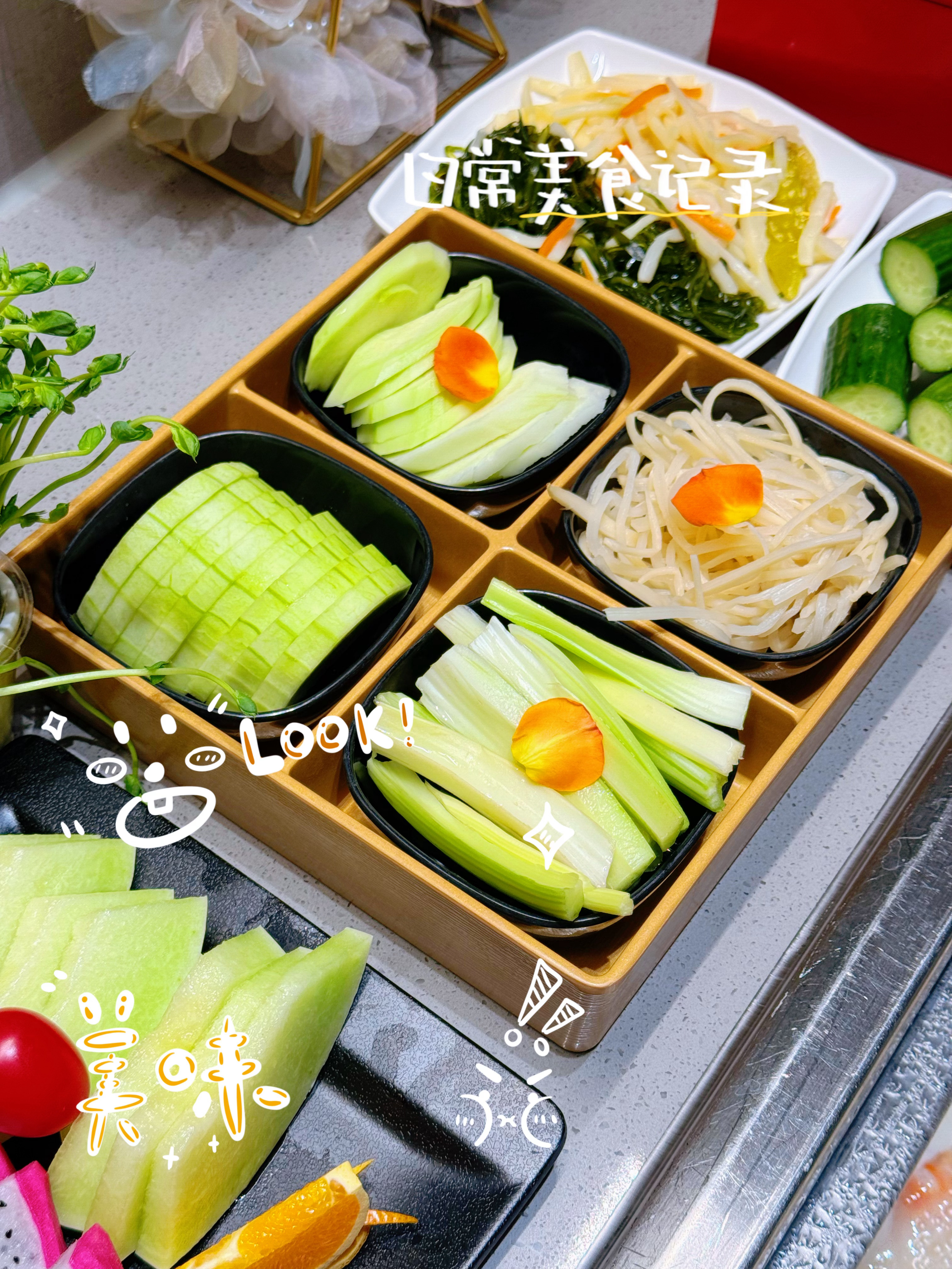 武夷山脉千丝脆笋+鸡腿芥蓝+乌蒙山水果清芹+苹果丝瓜,咬下去会“咔哧”响的春天气象局!搭配海鲜粥底锅,不要太鲜哦🌱