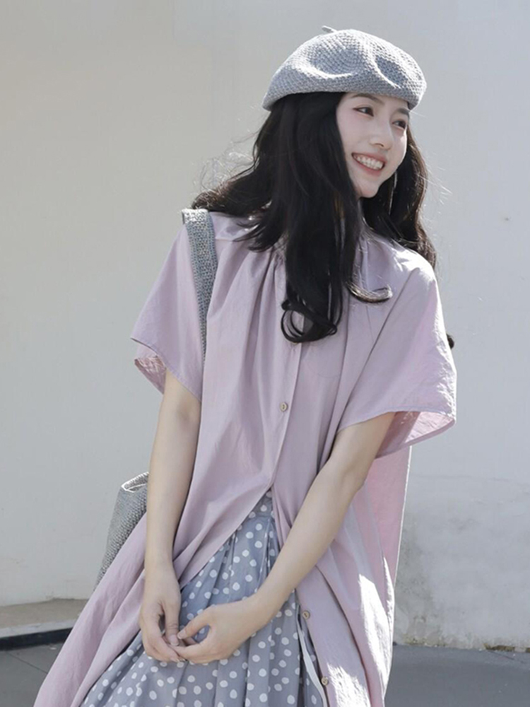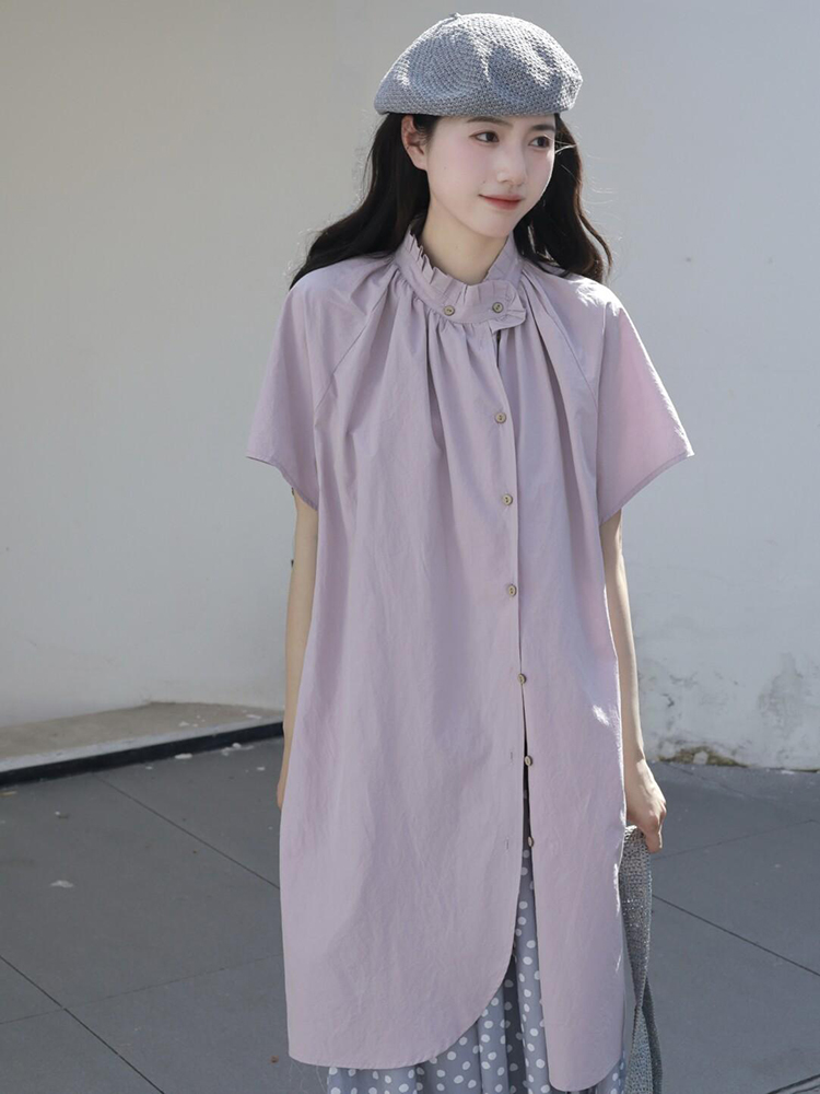 2025新款春季洋气内搭上衣法式气质轻熟风时尚粉紫色中长款衬衫女