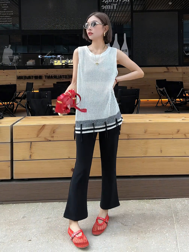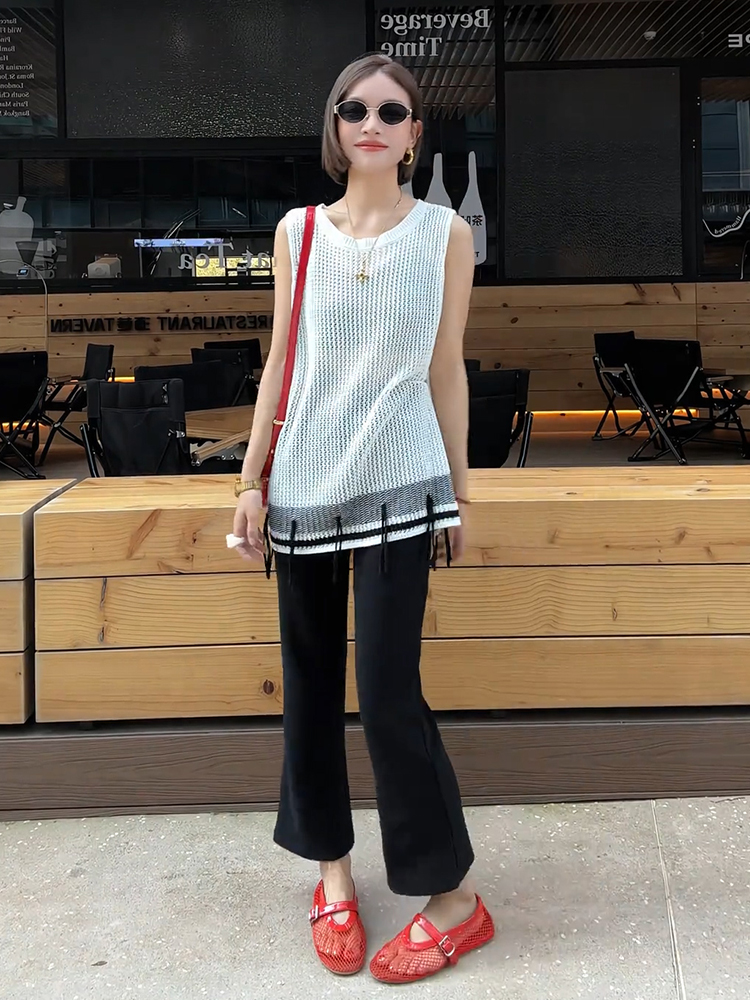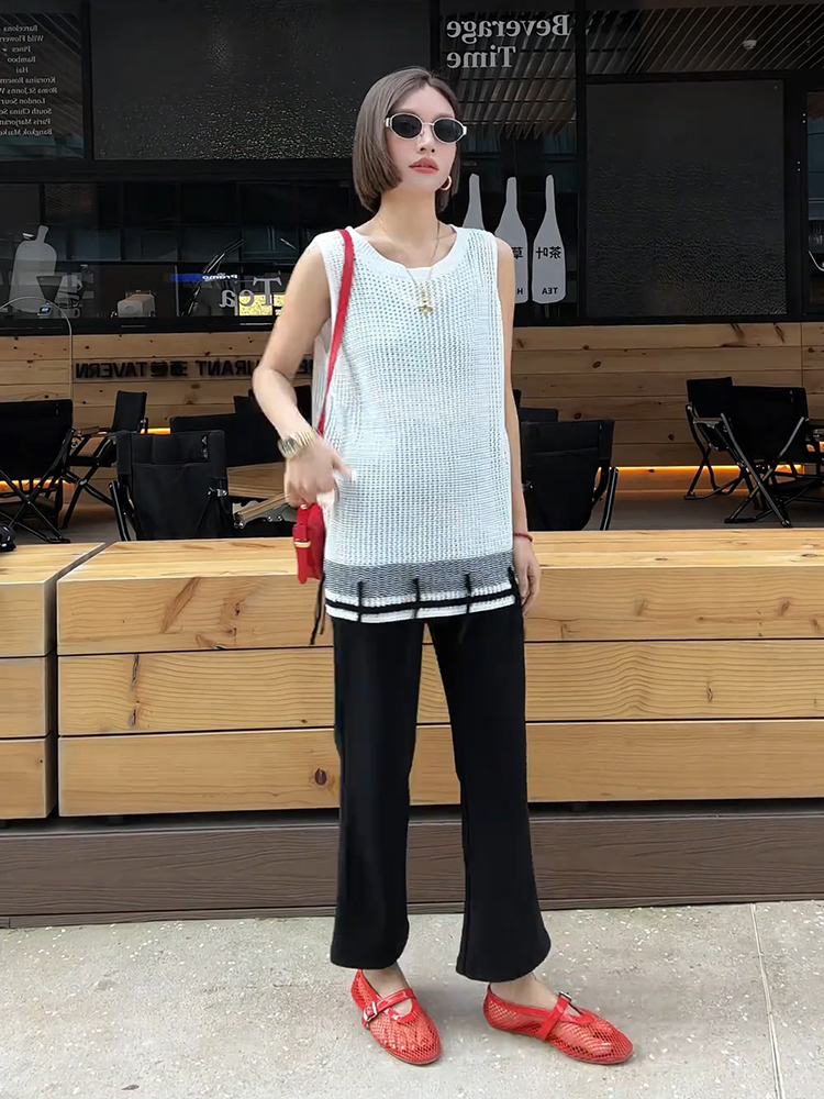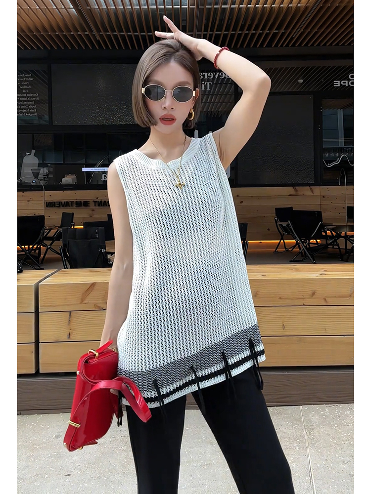 减龄慵懒风薄款针织衫高级感白色无袖T恤女