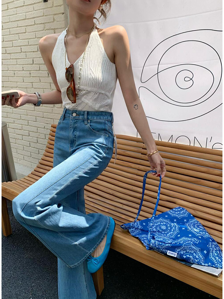 法式气质御姐风情万种的白色挂脖t恤