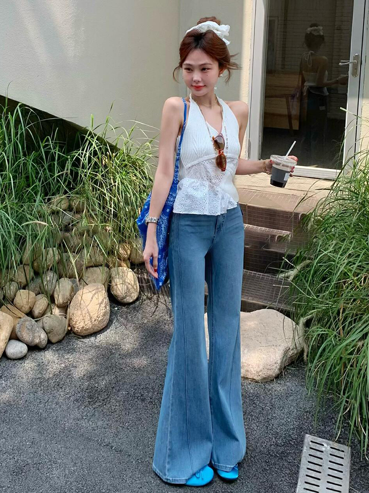 2025夏季超火设计感小众上衣法式气质御姐风情万种的白色挂脖t恤