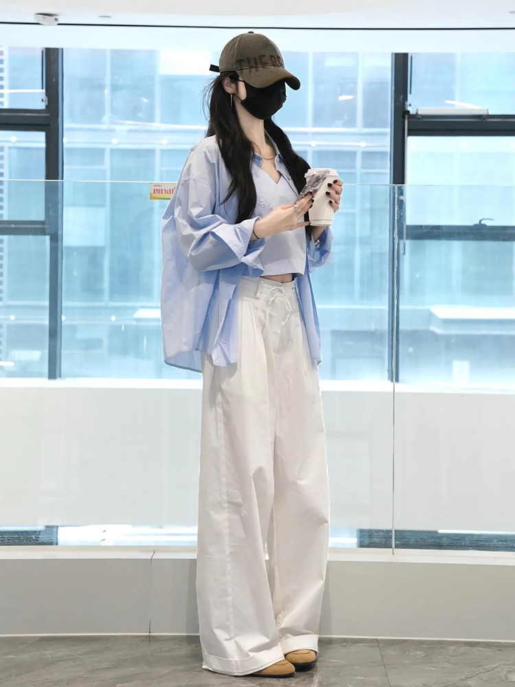 高级感轻奢减龄洋气宽松蓝色防晒衬衫