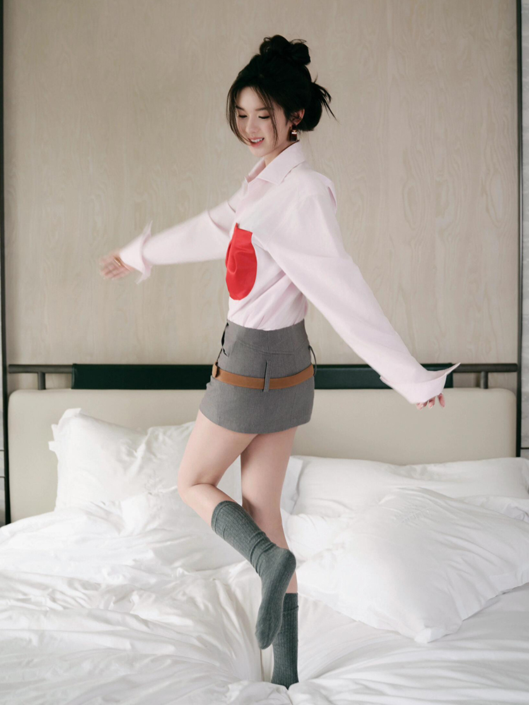 丝袜短裙性感美,玉体玲珑舞风姿。