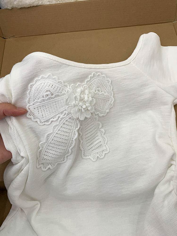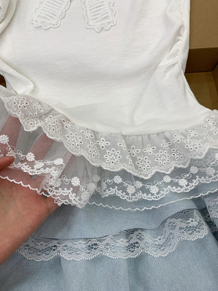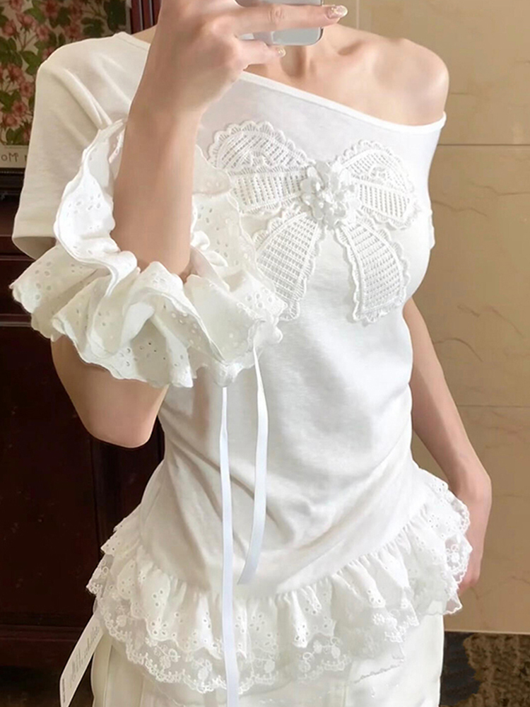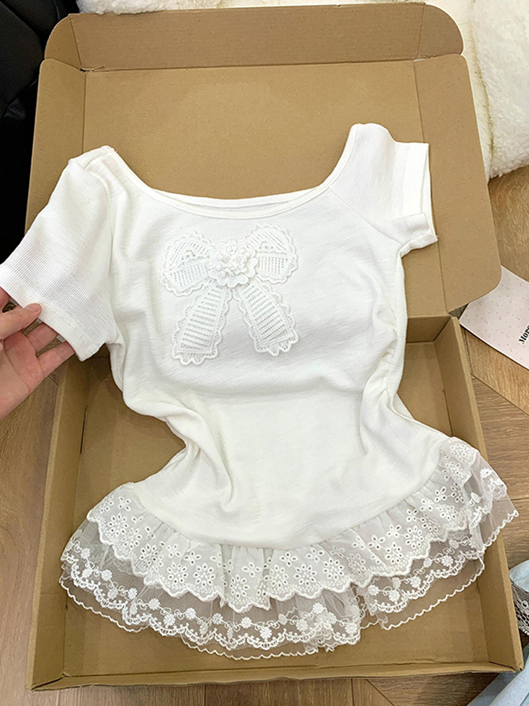 单穿上衣小众不撞款蕾丝荷叶边拼接白色t恤