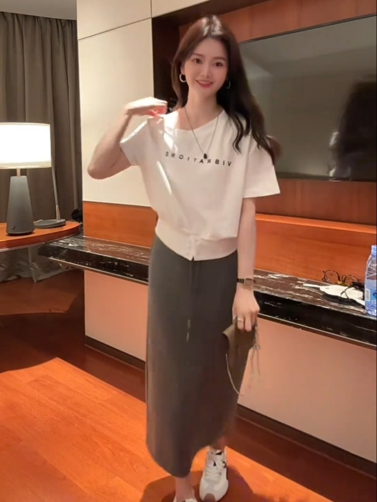 洋气独特别致超好看漂亮上衣打底衫设计感小众时尚白色短袖T恤春