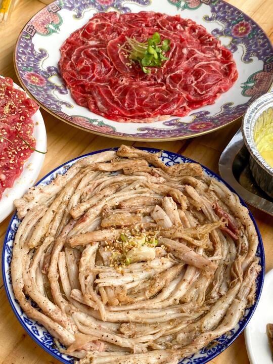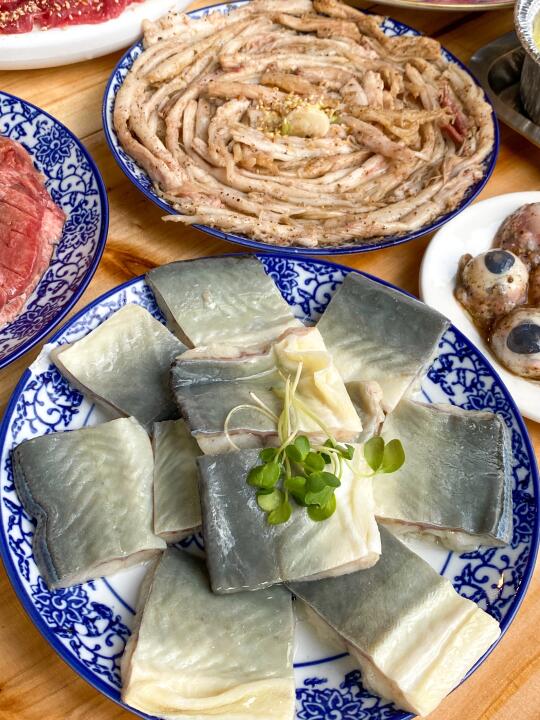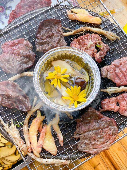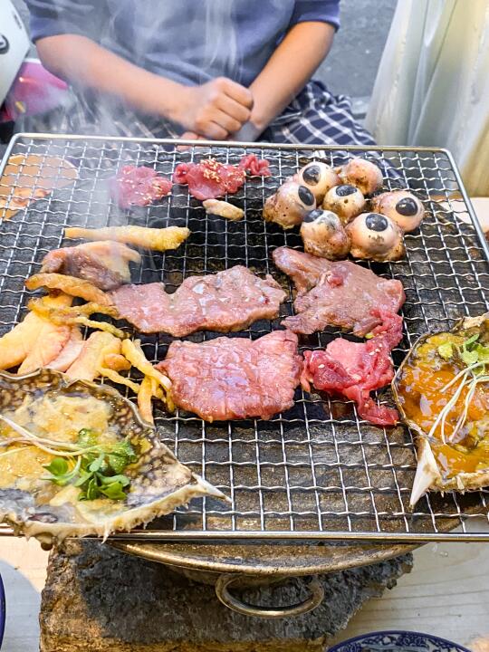 今天朋友带我来吃了家路边烧烤 他家居然还有烤猪眼睛!看着有点吓人但好吃