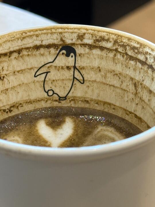 守着鹅岛的超长假期结束,第一天就赶早来登岛,虽然天气阴阴的还飘点小雨,但看得出来大家还是热情很高。鹅今天很有诚意,超多品种的糕,劳烦多洗了两个盘子让我拍拍照,其实买糕是为了出去春游的嘿嘿。 ◽️ 为了控制咖啡因的摄入量,喝了个热热的焙茶拿铁。小企鹅的杯子好可爱,有点开盲盒的感觉,猜猜你喝的方向有没有企鹅!这回巧了是对面,每一道痕迹都记录了我一口喝了多少。