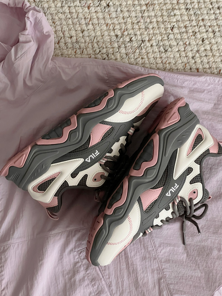 复古山丘老爹鞋新款来袭!整个鞋款风格精致甜美,俘获一大批女孩的少女心,让人忍不住想拥有,上脚后,舒适百搭,心情愉悦! 户外元素感融合女性曲线元素,以镂空,穿插的设计方式演绎,体现帮面丰富的层次性 ; 多种纹路人造革与密孔三明治网布,层次丰富,满足应季性穿着需求; FILA PIUMAX轻舒科技:轻量舒适,减轻行走的足部负担。