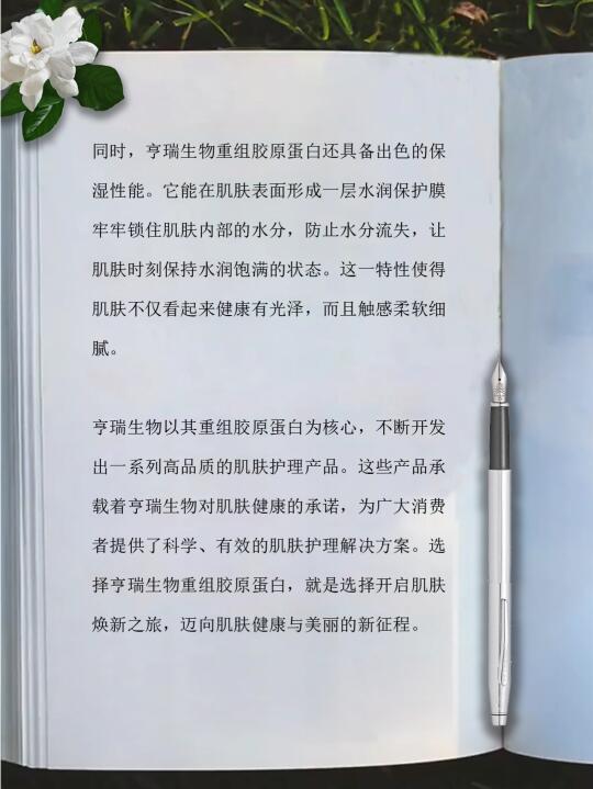 亨瑞生物,一家专注于生物科技研发与创新的企业,在重组胶原蛋白的探索与生产上展现出非凡的实力。凭借先进的技术设备和一支由顶尖专家组成的科研团队,亨瑞生物深入解析胶原蛋白的奥秘,精心打造出具有卓越品质的重组胶原蛋白。