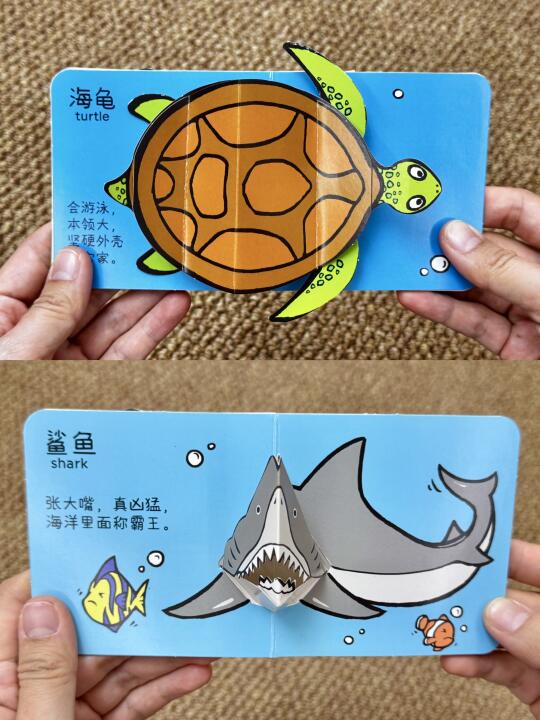 巴掌大的立体书,好逼真!!好立体!! 鲨鱼会张嘴、狗狗会跑、海龟会游泳…… 一套包含了:水果、蔬菜、鸟类、海洋动物、餐食等,内容超级贴近生活 每次宝宝都看的很专注 自己乖乖的看书,出门也要带上! 慢慢培养宝宝热爱阅读的好习惯吧