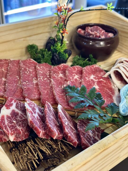 在宜昌也是吃上和牛蛋糕了!! 看起来真的好像和牛啊吃起来居然是蛋糕 烤肉也巨香!! 就看看这肉的品质真的在宜昌难找第二家 烤的过程中奶香味直接扑鼻而来!! 真的是入口即化…他们家牛肉品质都没得说 冰激淋烤面包每次来必须吃!! 是隔三差五就会来的宝藏私房烤肉小店呀🤤