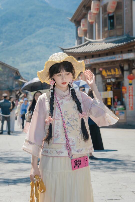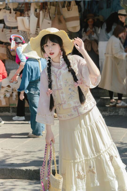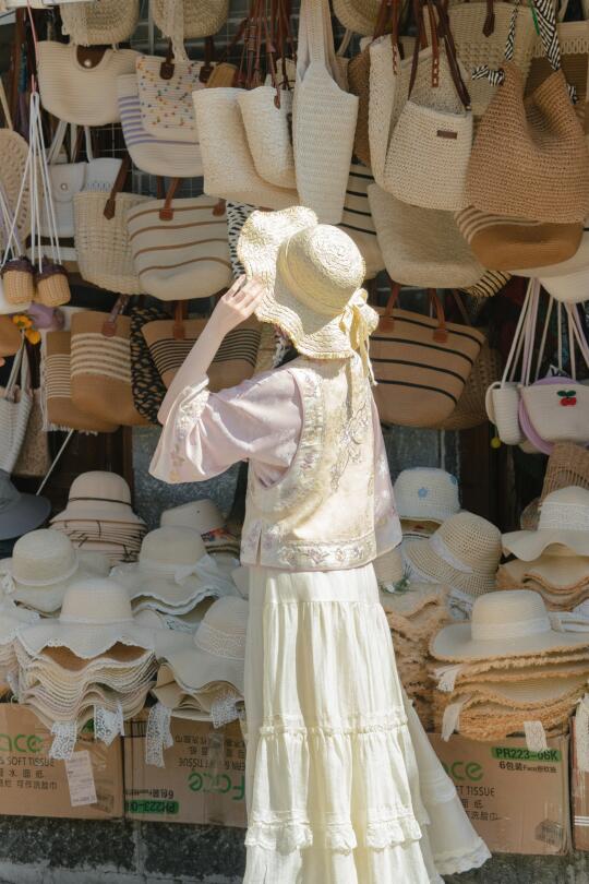 满绣小马甲+半裙的组合,我真的百穿不腻[喝奶茶R][喝奶茶R] 搭配一件内搭和草帽,一套日常精致的国风旅行穿搭就搞定啦