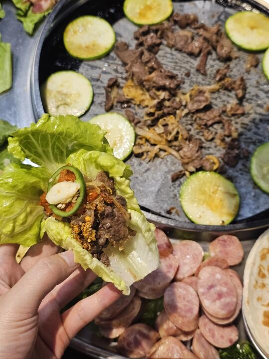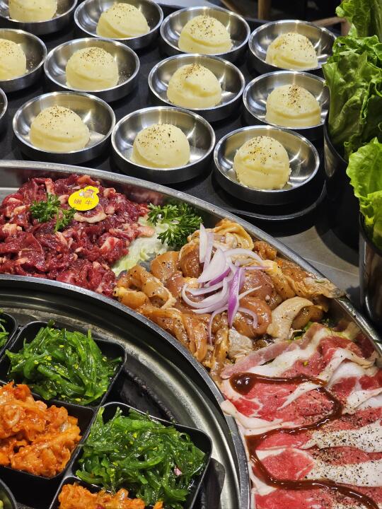 哇塞!在布吉发现一家💰性价比chao高的炭火烤肉店🥩双人餐现在只要⑨⑨就可以吃这个一大桌😭太值了,三个人来这吃都纷纷打饱嗝🤣 土豆泥🥔泡菜、生菜等小料都是免费🆓无限续,太良心了,终于不用吃烤肉的时候不够小料了,想咋吃就咋吃✌🏻 肥牛和嫩牛真的很好吃,肉很嫩也很多,烤完滋滋冒油♨️,再用小饼一卷,不用去淄博了,这里就很好啊😋 酸菜很好评,可以很好解决猪肉油腻的问题,外面再包一层生菜🥬,一口一个停不下来