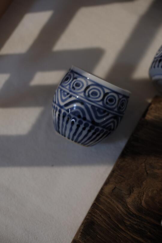 日本已故巨匠“泽田痴陶人”泽田米三作纯手绘青花杯,中古保存品,唯一一个代表日本陶艺最高水平在大英博物馆做个展的艺术家。