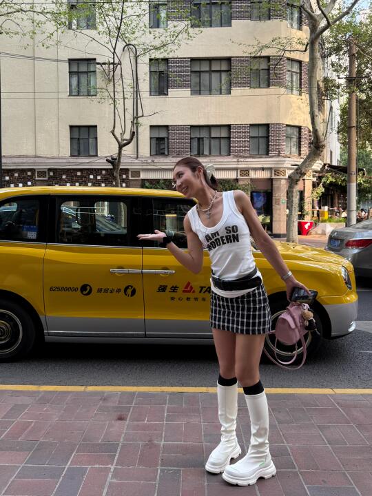 吴艳妮在成都穿着短裤大腿看起来很粗壮,表情自信又张扬