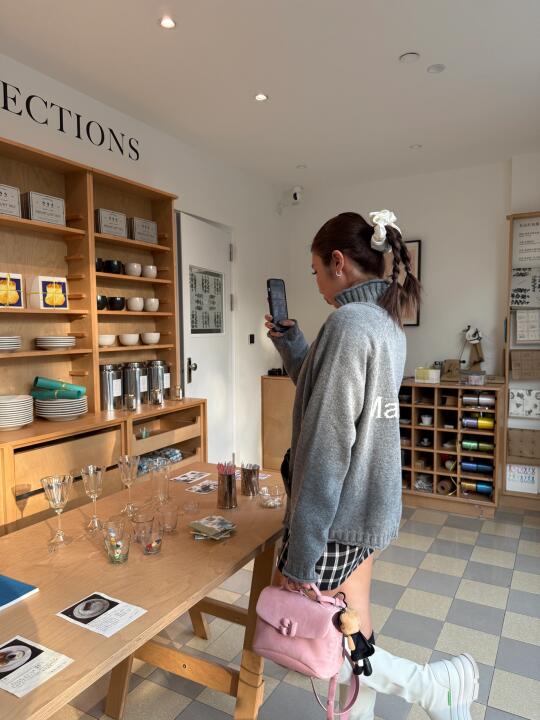 山林间的溪流绕着青石路,新中式上衣配牛仔喇叭裤,把国风温婉和休闲随性揉进山野的风