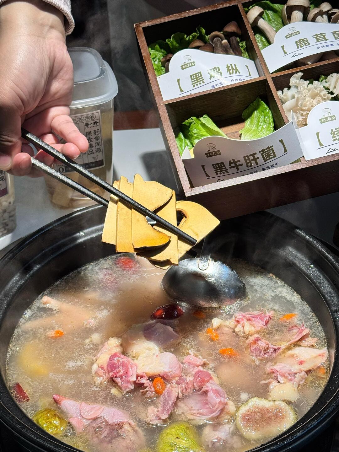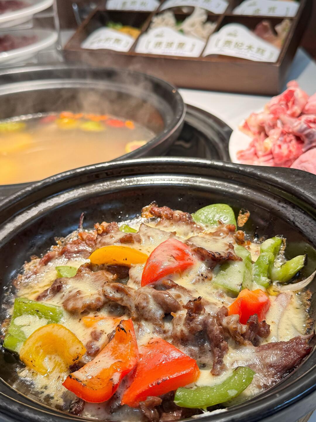 一进门就被这家店满满的烟火气吸引住了 暖黄色的灯光💡,还有那扑鼻而来的香味,仿佛到了小时候的老街巷 无花果汤底,清甜的无花果香气在锅盖打开的一瞬间就扑鼻而来,先来一碗热腾腾的汤🍲暖暖胃~喝完再下鸡肉,煮出来的食材都带着果香💕 走地脆皮鸡,品质绝了!稍微烫一下就可以吃了,搭配他们家灵魂酱料🥣,入口鲜香嫩滑 芝士啫牛肉,浓郁的芝士和鲜嫩的牛肉结合,肉食爱好者不能错过🤤 广式干炒牛河,河粉Q弹有嚼劲,炒的恰到好处,锅气十足