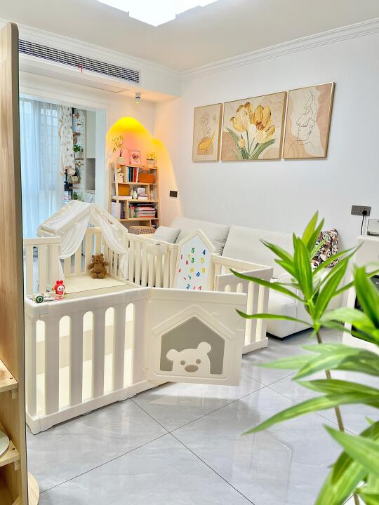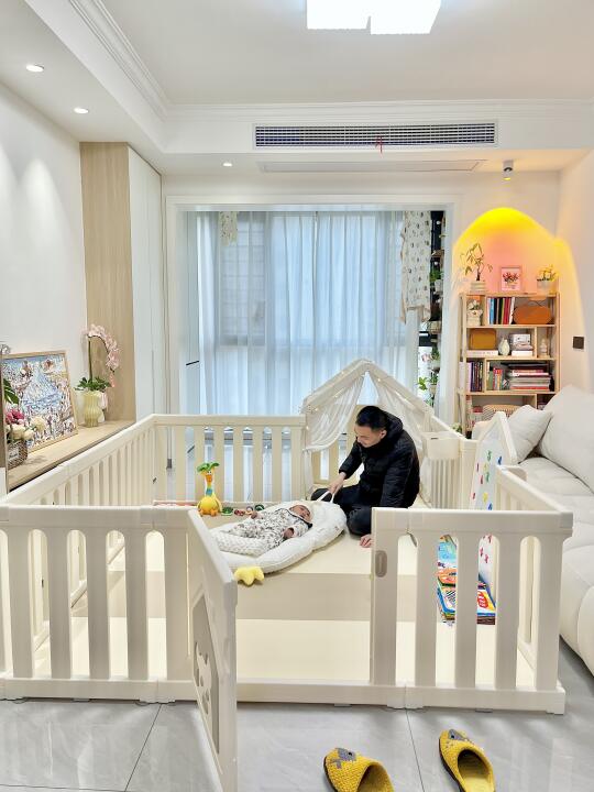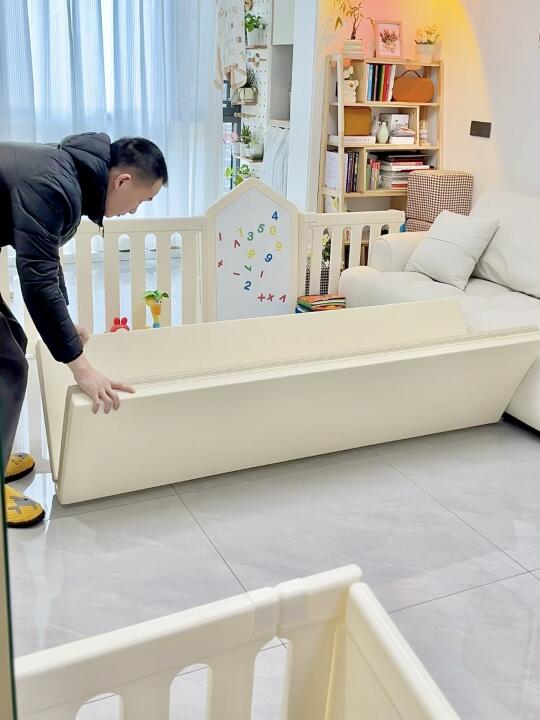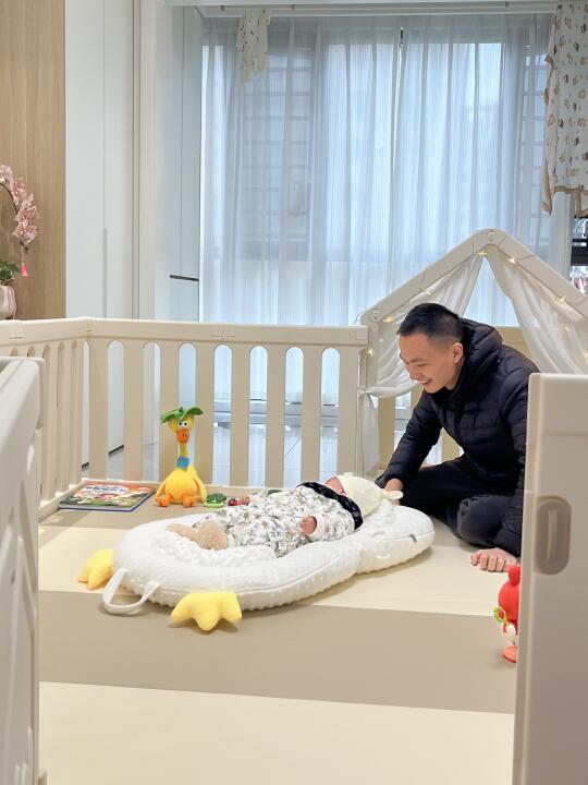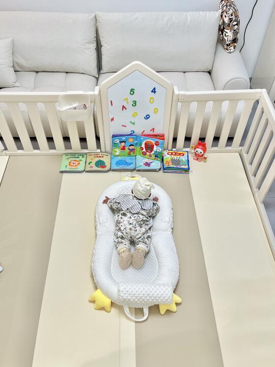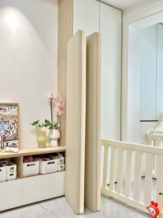 去年双十二囤的围栏爬爬垫终于安排上啦! 铺在我开间3.5米的客厅 讲真质感很好 很惊喜 围栏是进口HDPE的食品级材质 小猪仔口欲期啃咬也放心 组装简单 装上好稳(吸盘要用很大力气拔!) 爬爬垫选的4厘米厚 内胆是IXPE的材质 真的没气味 一键式就能铺开 折叠起来也不会占地方 围栏选的180×200,带画板的 等小猪仔大了些也能继续用 据说这款可以改造成衣柜 之后再等我慢慢解锁吧