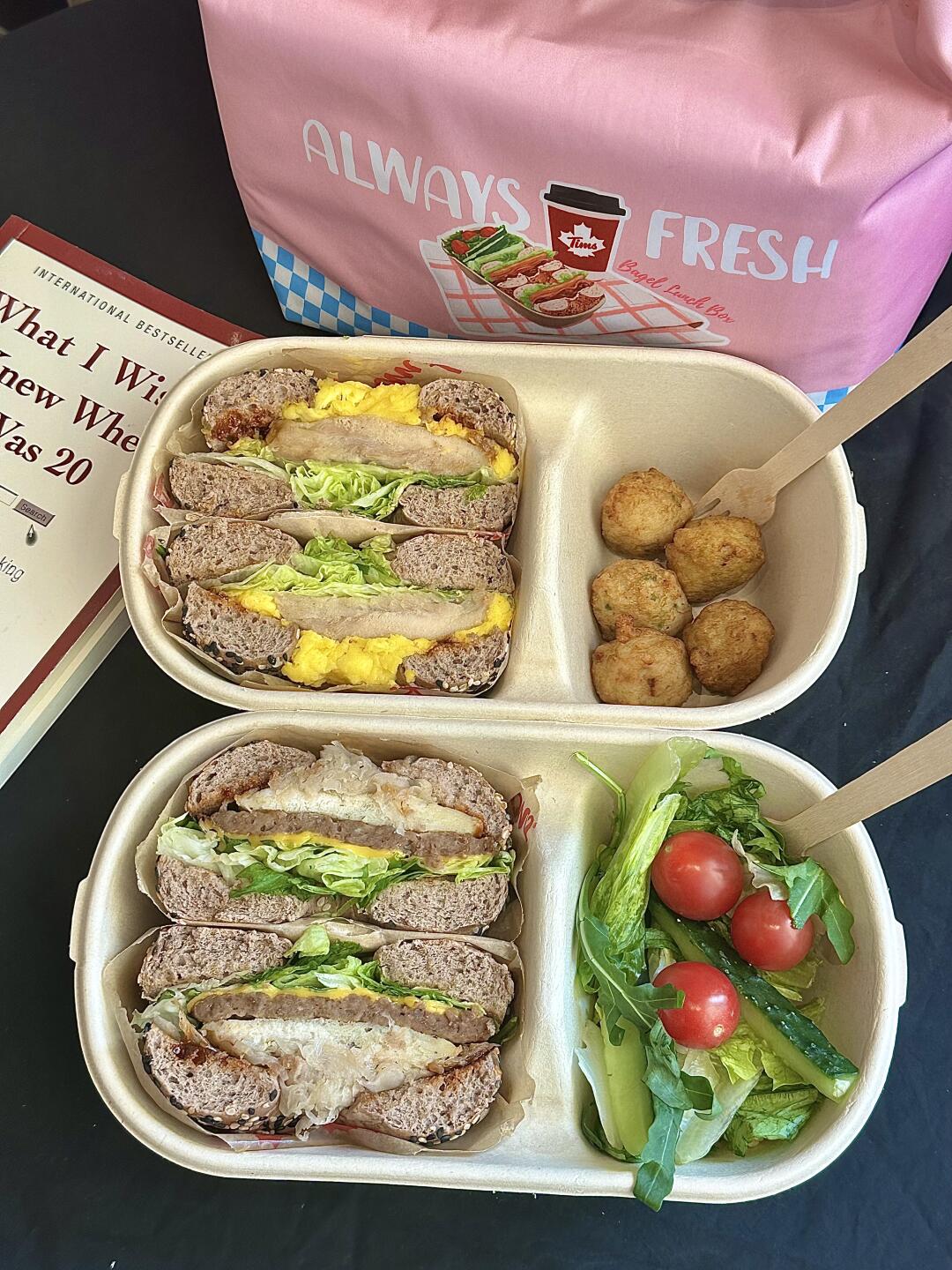 爱吃辣的同事更是好起来了,之前从来没有辣味堡的 Tims 轻体午餐盒这次竟然上新了两款!辣烤蛋香鸡腿肉贝果堡,鸡腿肉是去皮的,含金量谁懂啊,减脂也能吃香喝辣了~再加上特制的天好辣酱,好吃到让人直呼过瘾!还有辣烤牛肉贝果堡,牛肉加倍,培根加码,搭配着各种蔬菜和酸椰菜,吃起来完全不腻,还带着微辣,饱腹感很足,大口吃肉太满足啦!每天换着花样吃,连续吃了4天,根本吃不腻~贝果都是现烤的,谁说吃得健康就一定要吃草啊~