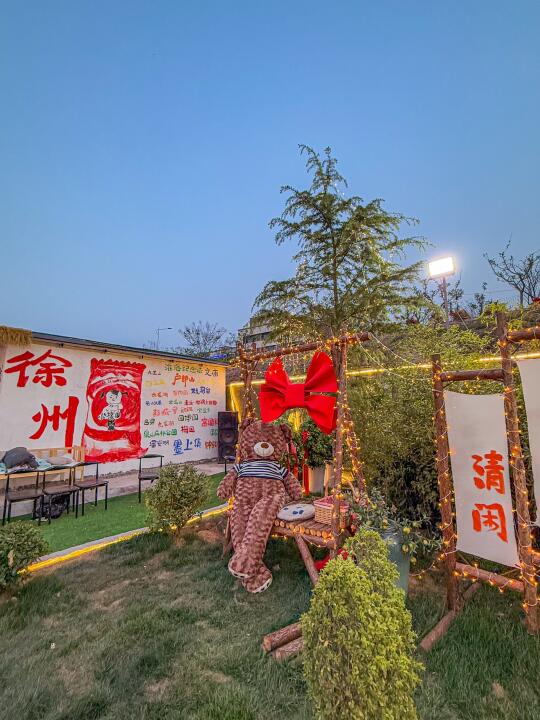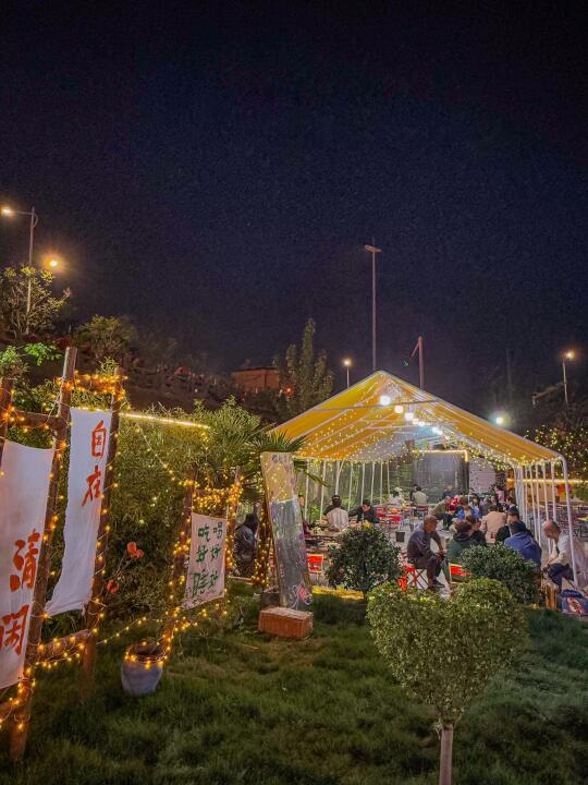 露营风大排档,6点多到的,坐满了,还好来得早,院子好大!布置的挺用心,一大片草地,夜幕降临会更美! 他家地锅鸡、地锅鱼辣口的!够味! 拔丝也是老味的! 蛙鱼鸡蛋更是一绝!辣辣的好下饭!! 环境没得说,伴着夕阳吃着地锅,好chill