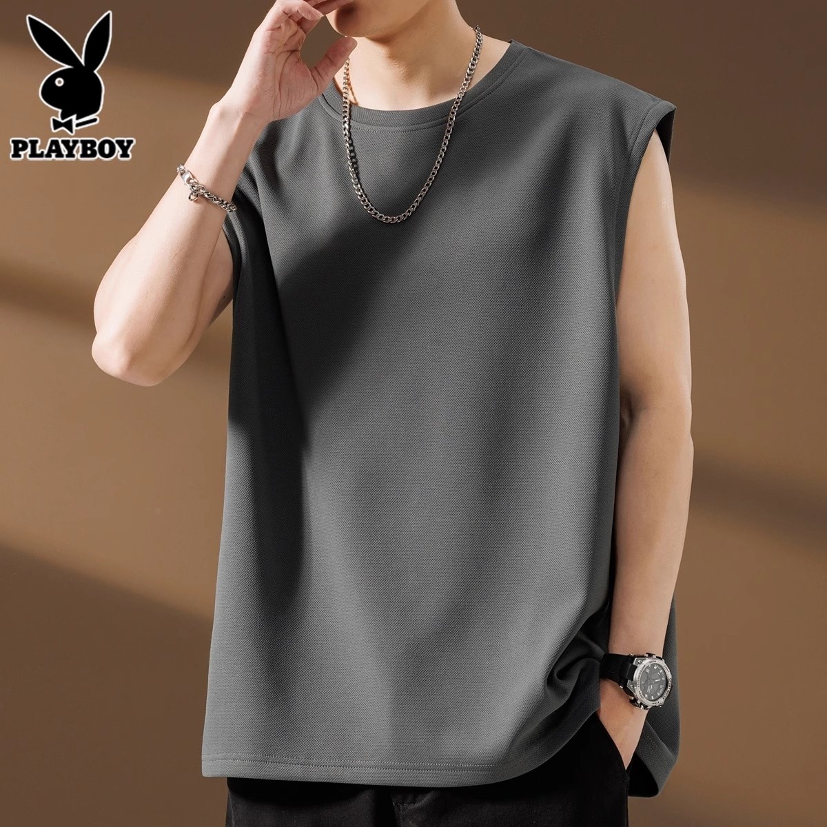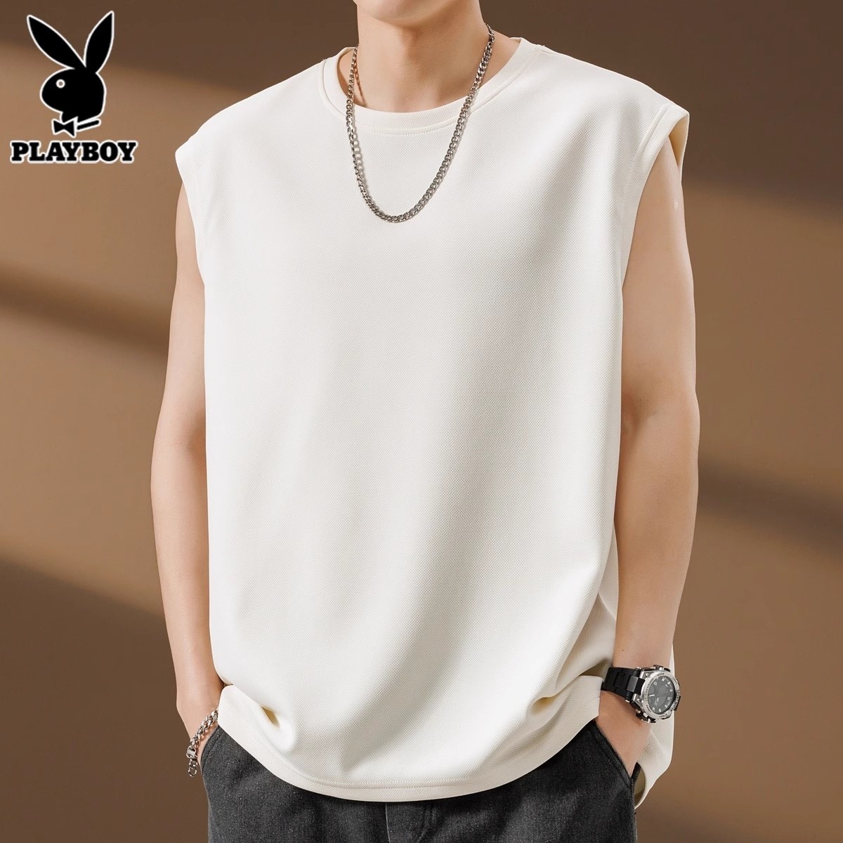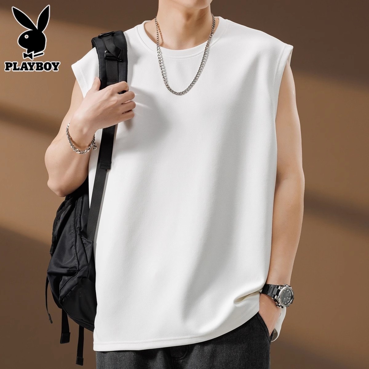 花花公子白色背心男士夏季薄款宽松运动上衣