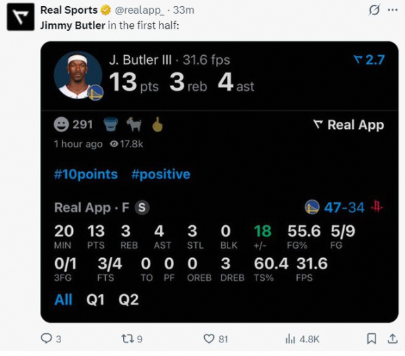 在NBA的季后赛舞台上,巴特勒的表现让大家对他的价值有了新的思考。他在近三场比赛中的出场时间累计达到130分钟,这是一个相当可观的时间量,足以说明他在球队中的重要性。 就拿勇士队与火箭队的这场季后赛来说,巴特勒的表现可以用惊艳来形容。全场他19中10,三分2中1,罚球6中4,拿到25分7篮板6助攻5抢断,命中率52.6%。这样的数据让他成为勇士队史的闪耀之星,他是队史第四位首次季后赛登场就拿到25+5+5+5断的球员,更是队史首位季后赛登场就5+抢断的球员。 从整个NBA历史的角度看,他这种25+5+5+5断的表现仅次于乔丹和威少,这是非常了不起的成就。再看看他在比赛中的具体表现,上半场就已经展现出强大的实力,20分钟内就拿到13分4助攻3篮板3抢断。到了第三节,他的干拔三分直接拉开比分差距,还不忘向火箭场边解说员挑衅。末节他的抢断和暴扣彻底锁定胜局。 然而,他的薪资问题也备受关注。他在勇士三年要拿1.6亿左右,这个数字不小。他的表现虽然目前看起来很值这个价,但是我们也要考虑到未来的不确定性。毕竟伤病等因素可能随时影响他的状态。不过就目前他比肩乔丹、威少的表现来看,他确实是有这个潜力的,只要他能保持健康和状态,这个钱对于勇士来说可能就是一笔非常划算的投资。