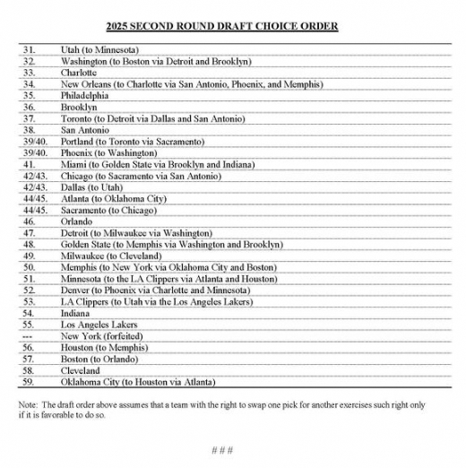 今天就来聊聊2025年NBA选秀顺序公布这件事,其中湖勇首轮无缘可是一个很大的看点。 湖人和勇士在NBA中一直是有着超高人气的球队。他们的比赛总是吸引着大量的观众,球队的一举一动也备受关注。然而这次他们都没有首轮签,这就像是一场大战还没开始,自己就少了一件重要的武器。对于球队管理层来说,这无疑是一个巨大的挑战。他们需要思考如何在没有首轮签的情况下,保持球队的竞争力,是通过交易来获取潜力球员,还是在现有阵容上进行深度挖掘呢? 而太阳队这边,首轮签确定为第九归火箭,这一结果对火箭来说可能是一个转机。火箭可以利用这个签位去挑选适合自己球队体系的球员,也许能为球队注入新的活力。 我们再看看同战绩球队抽签的那些事儿。这里面的竞争也是相当激烈的,每一个胜负都关系到选秀签位的最终归属。像独行侠战胜公牛,国王战胜老鹰等等,这些结果的背后是球队实力、运气等多种因素的综合体现。 虽然从第15到最后的排位已经确定,但前14位的乐透抽签还是充满悬念。在乐透抽签之前,各支球队都会对自己的签位概率进行详细的分析,同时也会密切关注其他球队的动态。 2025年5月13日的乐透抽签和6月25 - 26日的选秀大会就像两个重要的节点,在这期间,整个NBA都会围绕着选秀这件事进行各种运作和谋划。作为球迷,我们也可以尽情地猜测各支球队的走向和可能选中的球员,这也是NBA的魅力所在。