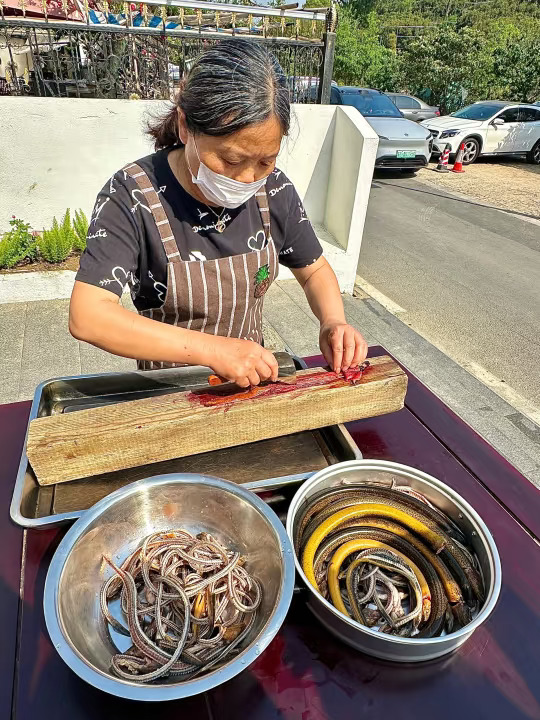 这家的鳝丝都是几个阿姨现挑的,很新鲜