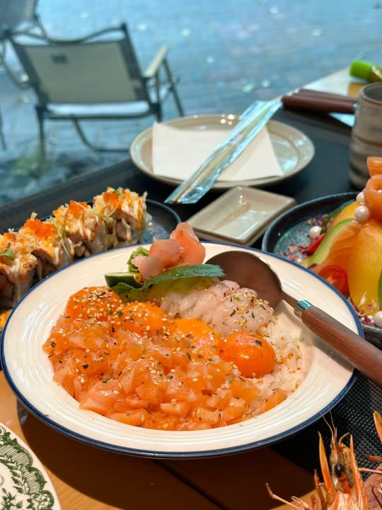 啊啊啊!在宜昌也吃上了一口鹅肝饭!! 这家私藏的料理店真不是吹的!! 一定要趁热吃!入口即化的感觉🤤 小小一碗尊嘟可爱到爆! 整个店的出品颜值都敲高 不怎么吃生食朋友点的三文鱼甜虾饭她也是爱上了 树下一整个独栋的环境真的好适合约会 每一个角落好好好出片 是我跟姐妹会反复来的小店