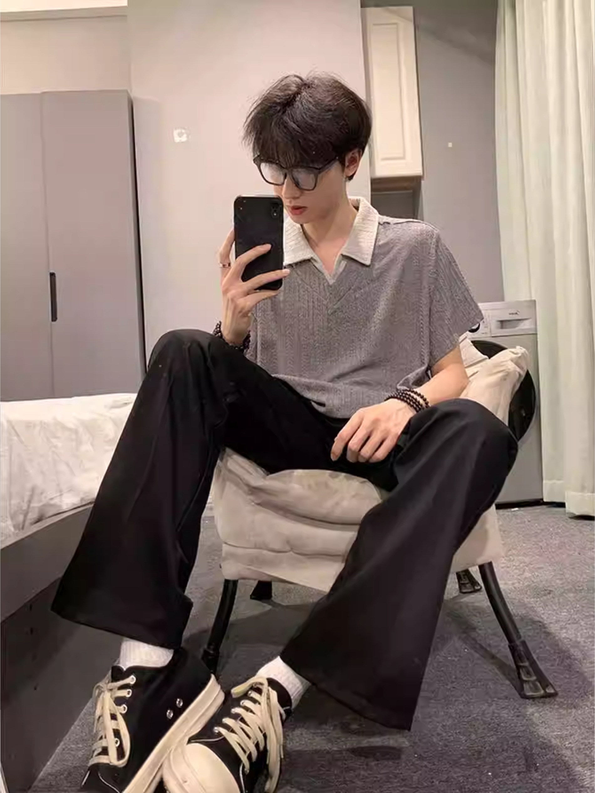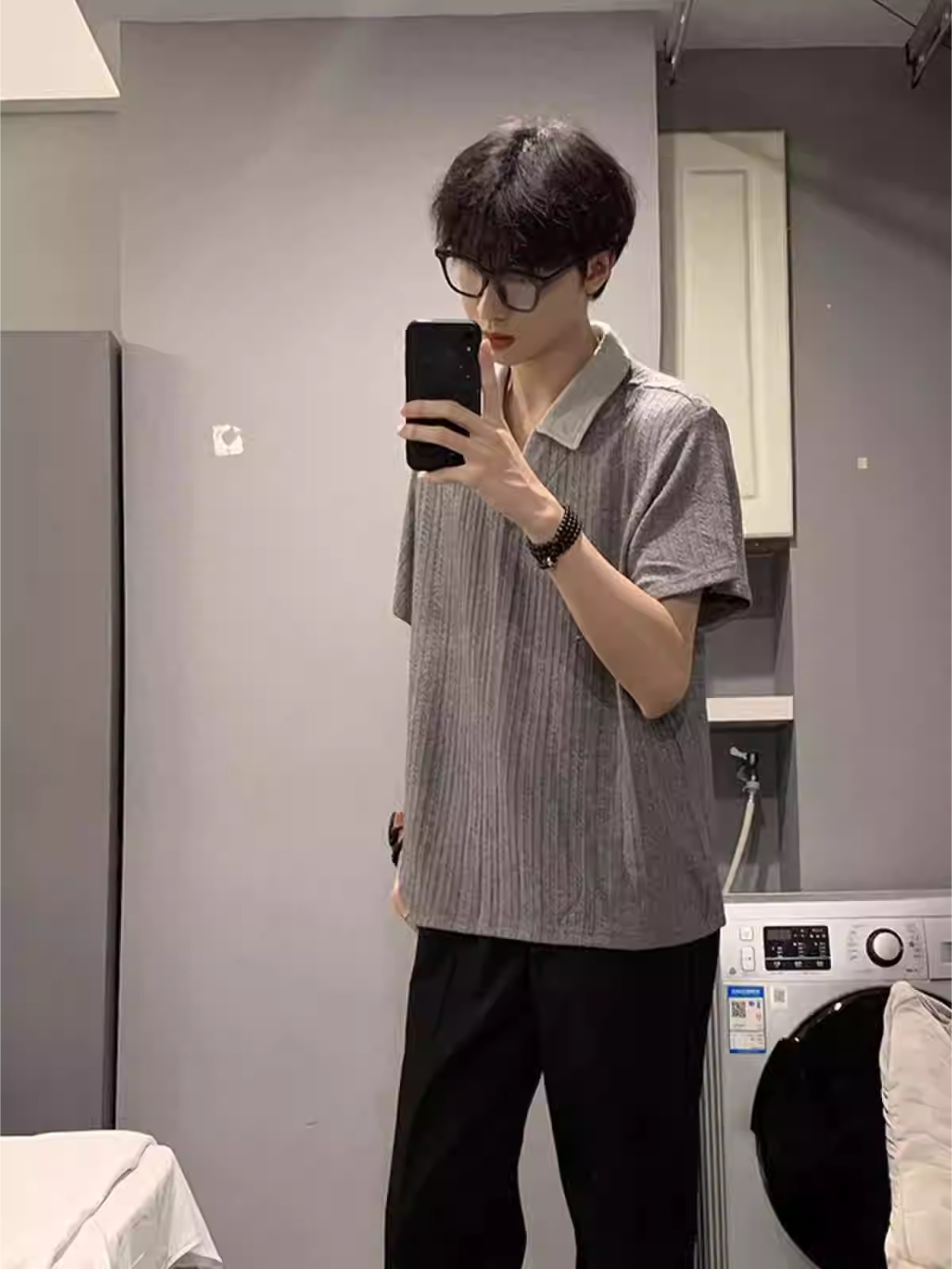 麦穗提花假两件POLO衫男夏季肌理感透气