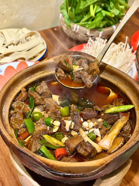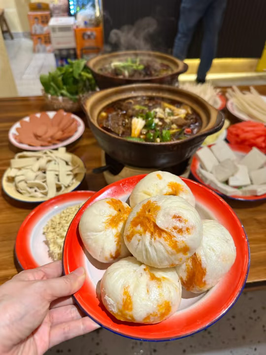 新发现cbd这边一家很好吃的砂锅店! 完全不输很火的那几家!! 很适合逛累了来吃一下 我们点的牛肉、腊蹄子锅都没有踩雷 配菜都在冰箱里面自己选 在坐的几个都来不及说话低头猛猛干饭 他们家还有牛肉包子也是卖的蛮好 人均不高,份量也还是可以的 1-2人的话一个锅就足够!